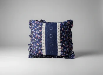Midnight Floral Lace-Trimmed Cushion