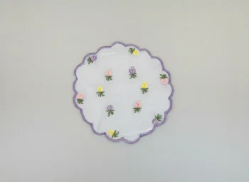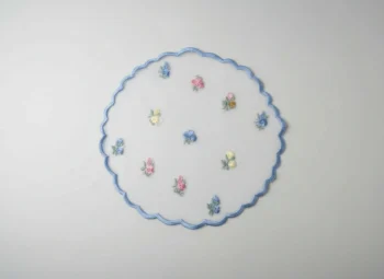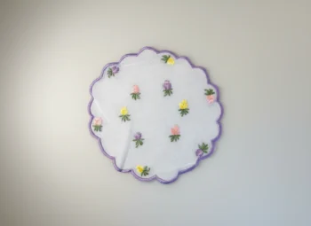 Pastel Blossom Embroidered Scalloped Doily