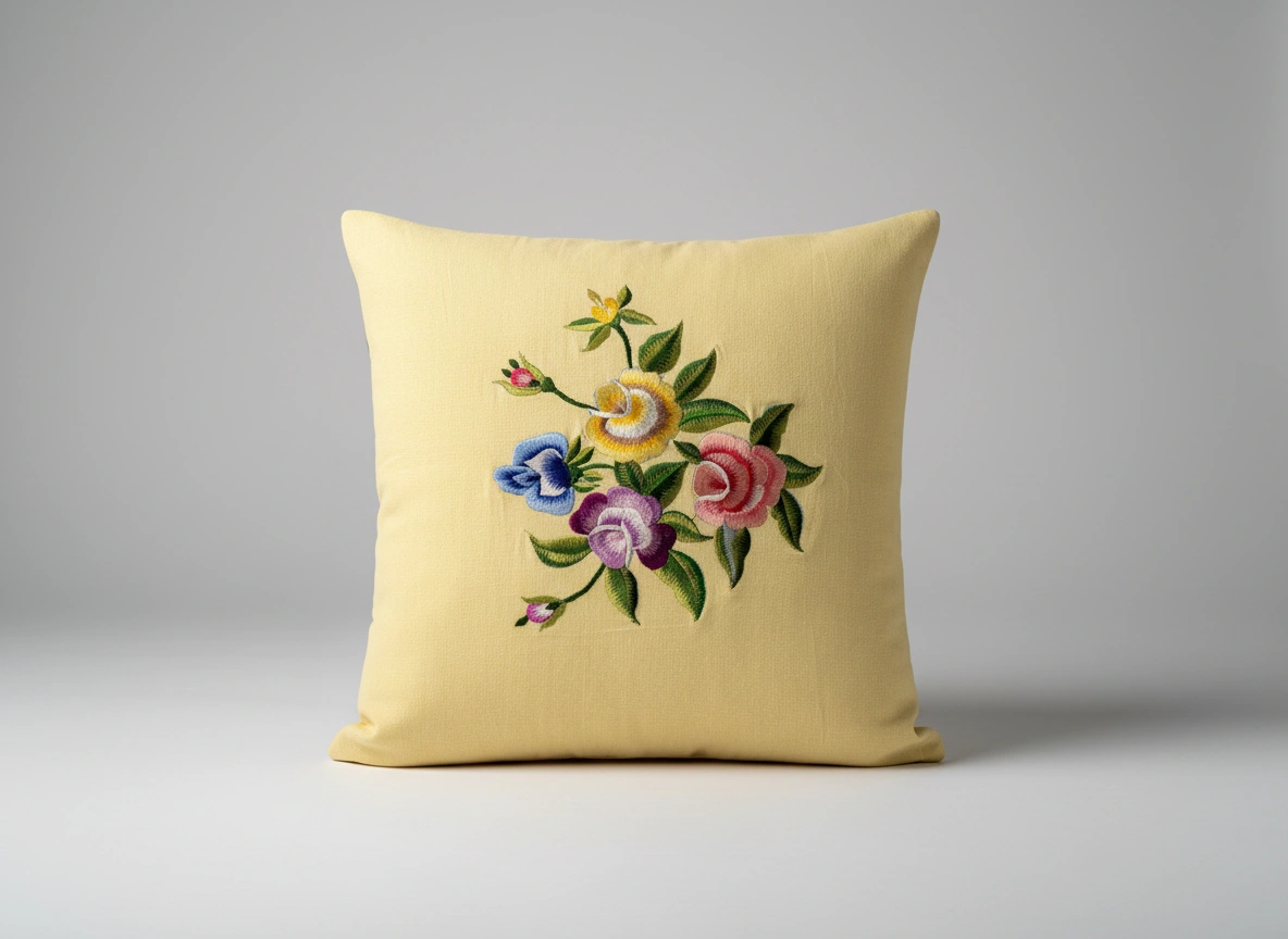 Bring a cheerful burst of color to your home with Garden Medley – a charming cushion cover crafted in breathable, textured casement fabric. Adorned with vibrant machine embroidery, the cushion features a stunning bouquet of multicolored blooms — from sunshine yellow and rosy pink to deep violet and sky blue. The delicate leafy details add depth and life to the design, making it a refreshing accent piece for any space.